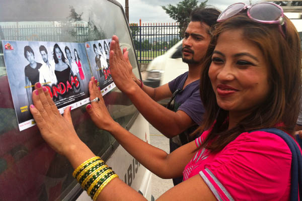 कलाकारलाई नै पोस्टर टाँस्न लगाउँदा फिल्मको पब्लिसिटी हुने भएकाले यस्तो गरेको निर्माता मधुकुमारले बताए । 'भोली देखी हामीले राजधानीका सयौं गाडीमा पोस्टर टाँस्ने छौं', निर्माता श्रेष्ठले भने, 'शहरका चोक चोकमा होर्डिङ बोर्ड पनि लाग्ने तयारी हुँदैछ ।' अर्का निर्माता राजुले शुष्माको शुरूमा बनाईएको पोस्टर भने अब सार्वजनिक नगर्ने बताए । उनले भने, 'त्यो पोस्टरले अलि बढि नकारात्मक टिप्पणी जन्मायो त्यसैले अब त्यसलाई हामीले प्रिन्ट नगर्ने निर्णय गरेका हौं ।'